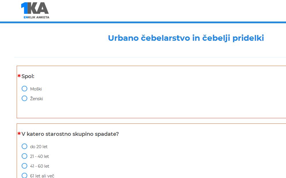 Vaši odgovori bodo pomagali tako konkretnim projektom kot širšemu poznavanju specifik urbanega čebelarstva.