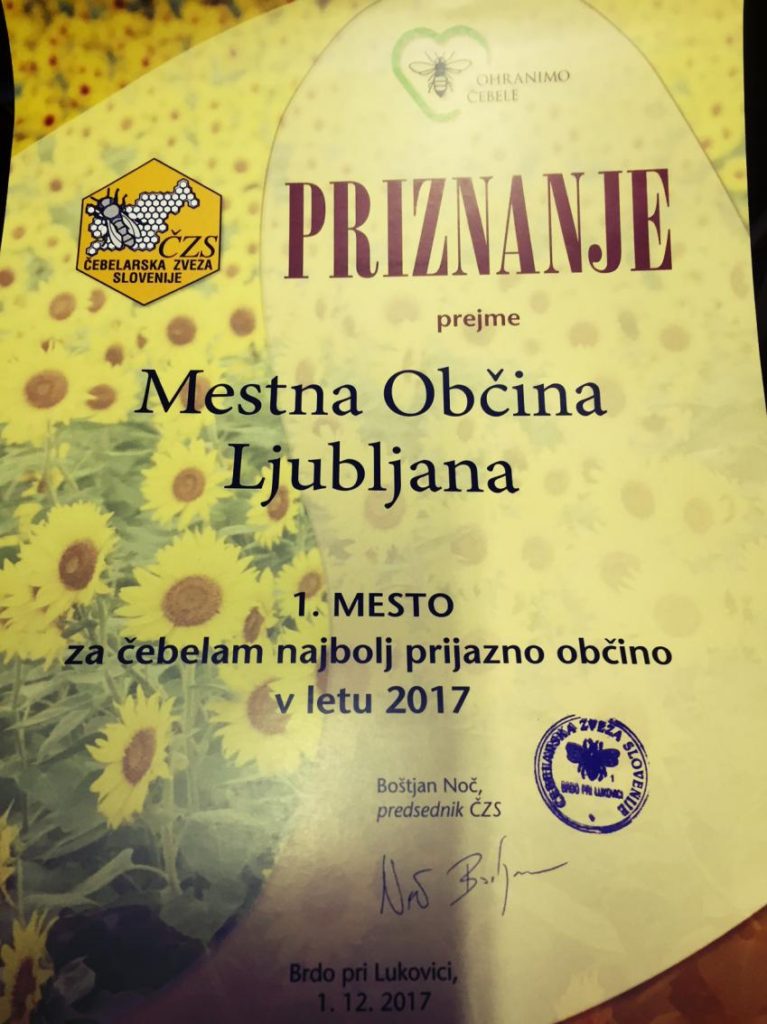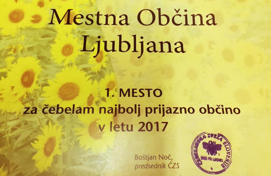 Mestna občina Ljubljana je Čebelam najbolj prijazna občina 2017!