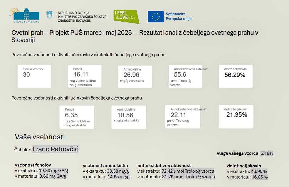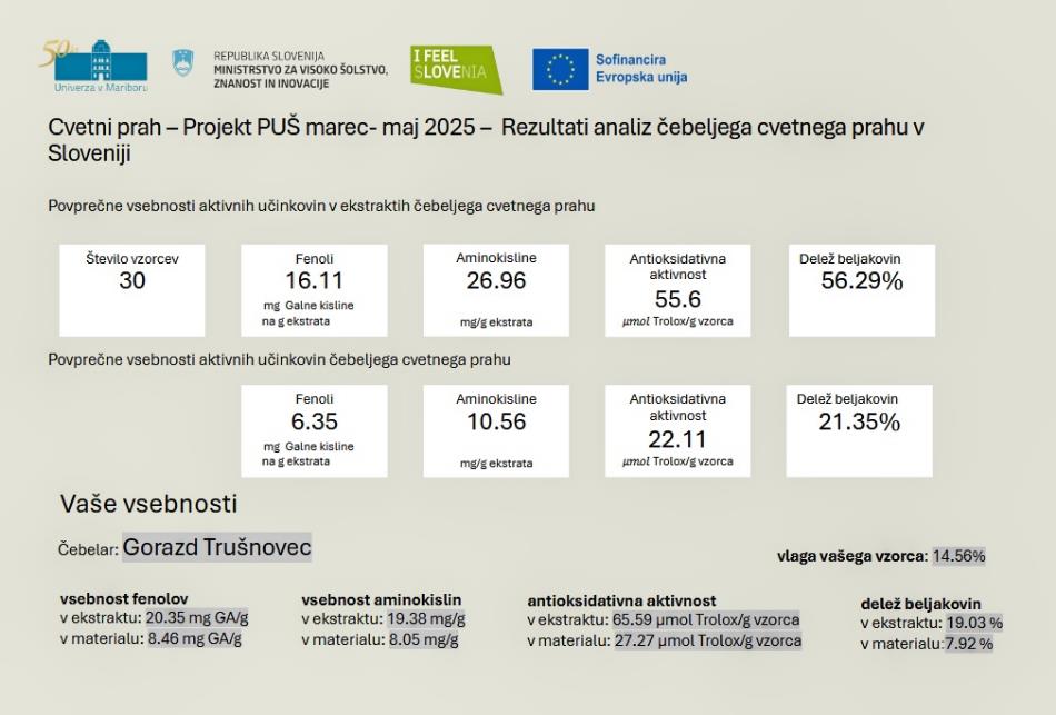 Za poslane rezultate analiz (ti so sicer javno dostopni) se lepo zahvaljujemo celotni ekipi Študentskega projekta PUŠ UM 2025 Cvetni prah!